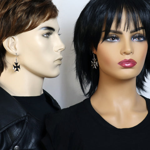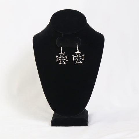 Knights of Malta Templar Cross Black with Silver Finish Dangle Earrings #122